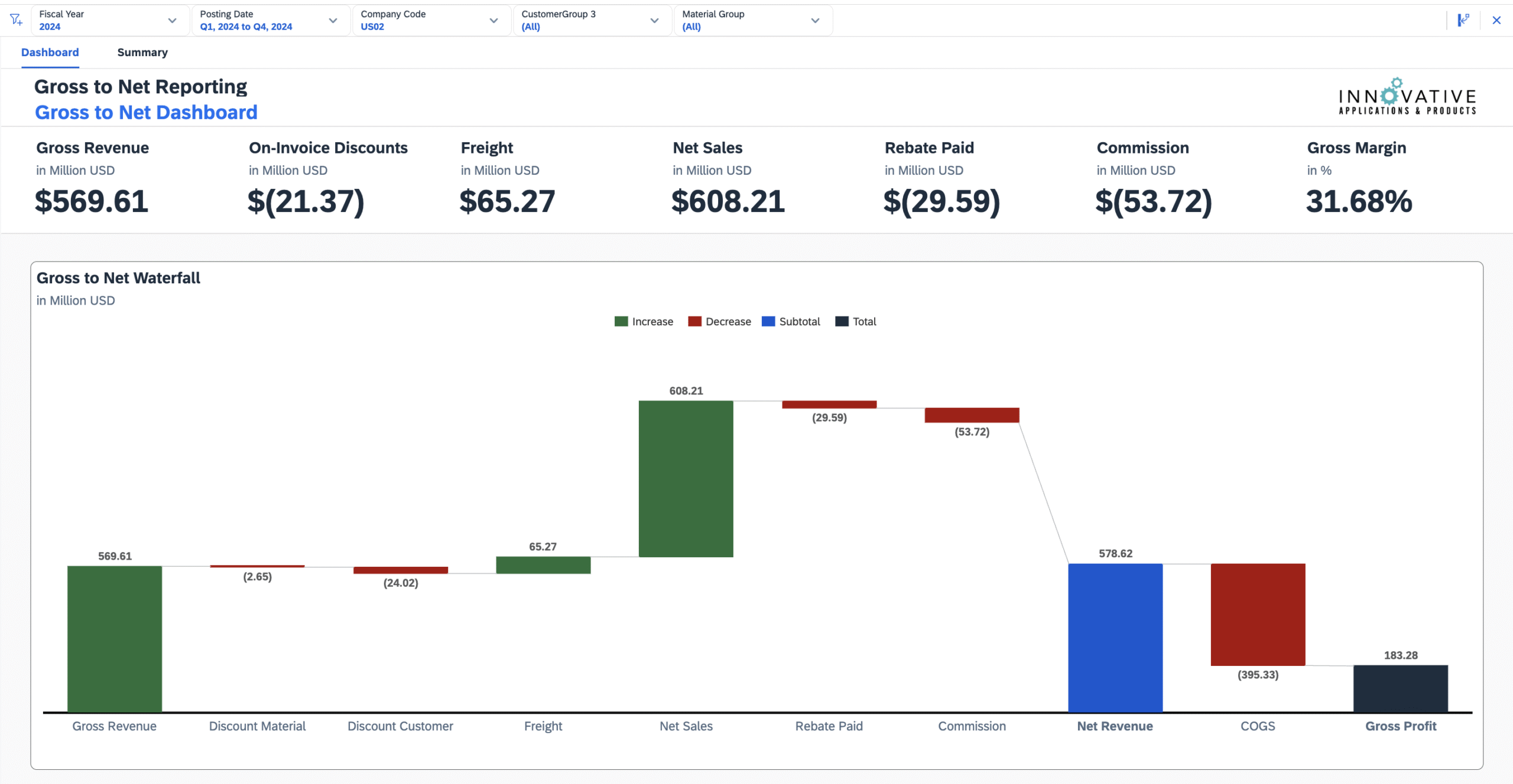- Accurately calculate all incentive layers—from list price to net-net revenue—factoring in discounts, rebates, COGS, and profit.